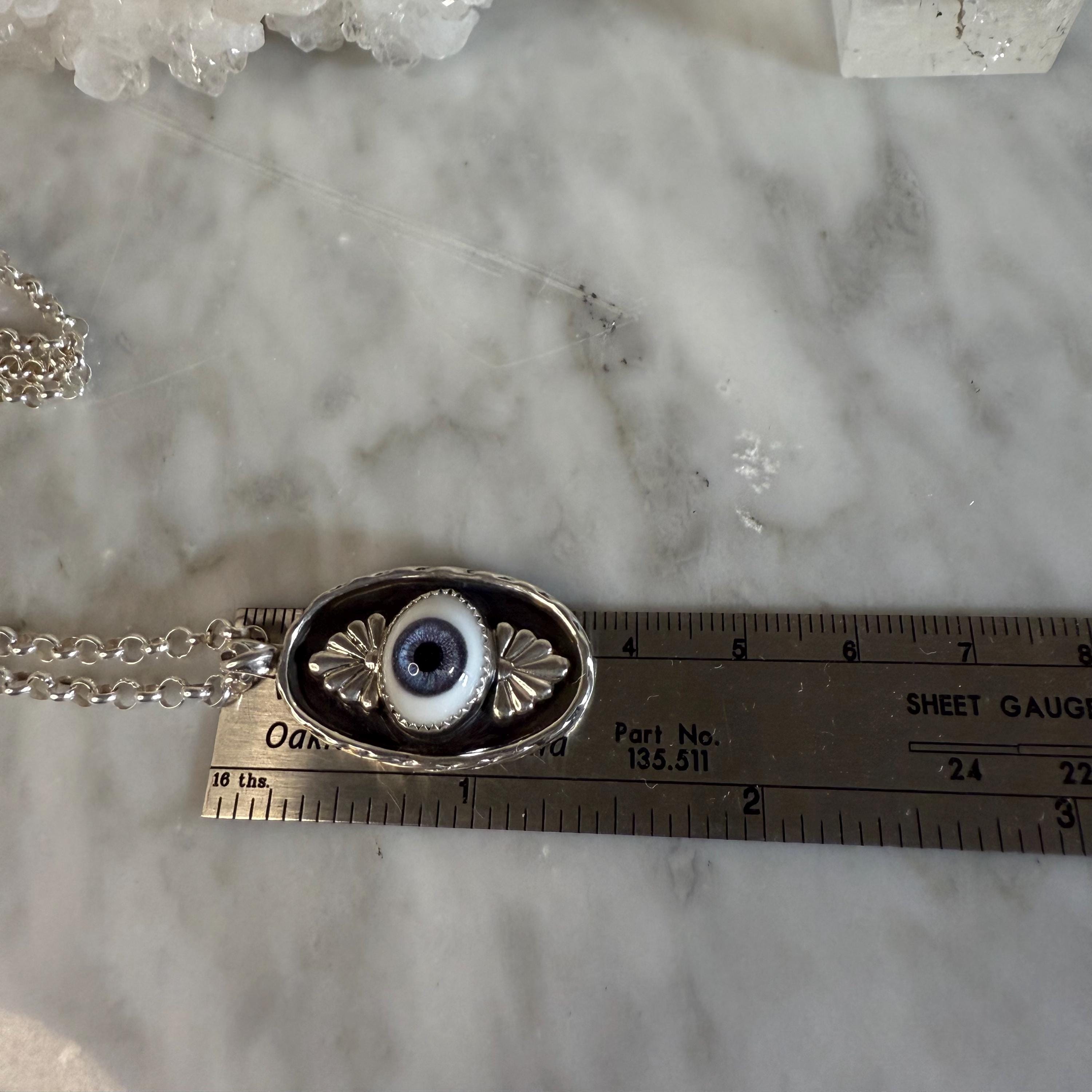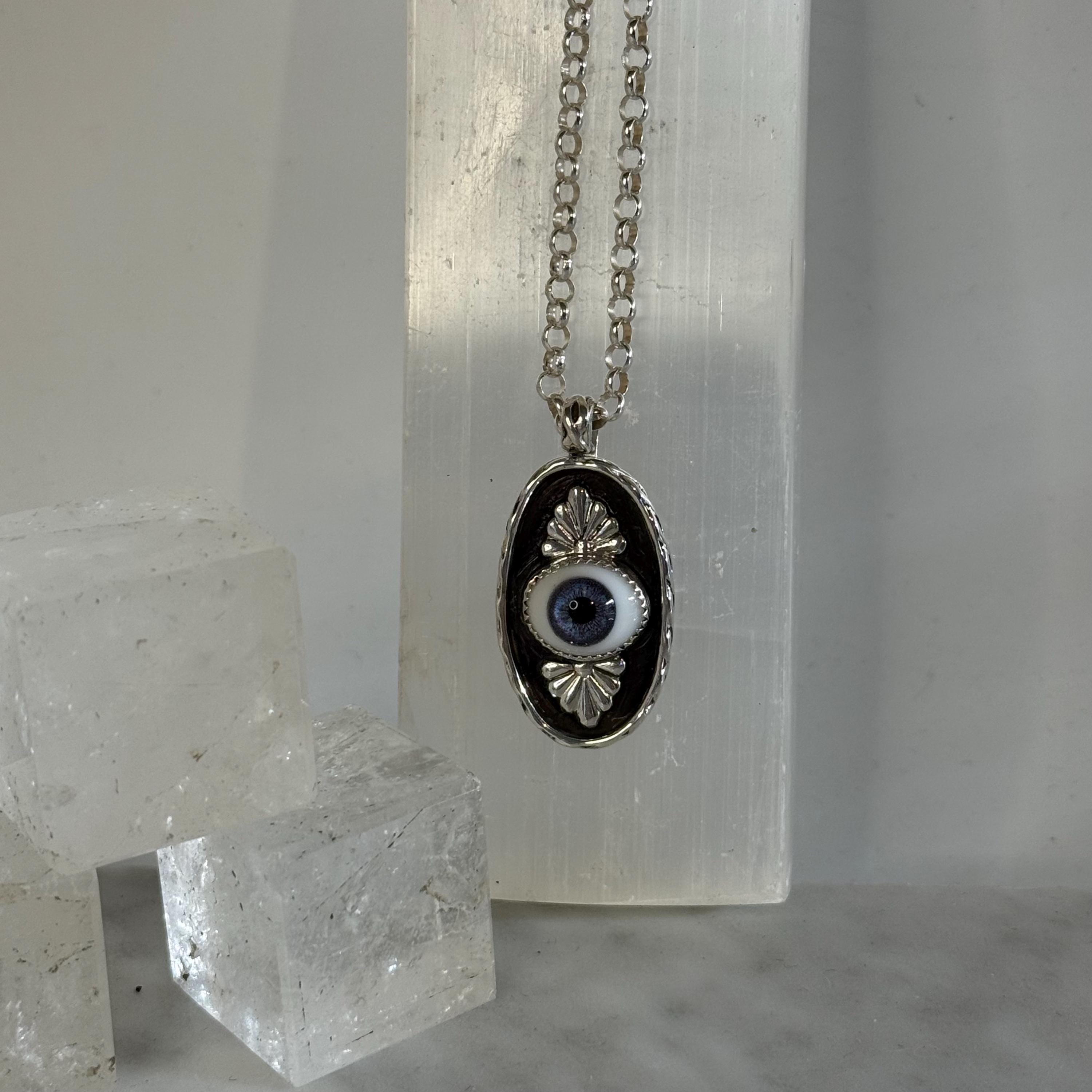 Sterling Silver Evil Eye Infinity Pendant Necklace - Handmade Shadowbox Design on 18" Rolo Chain